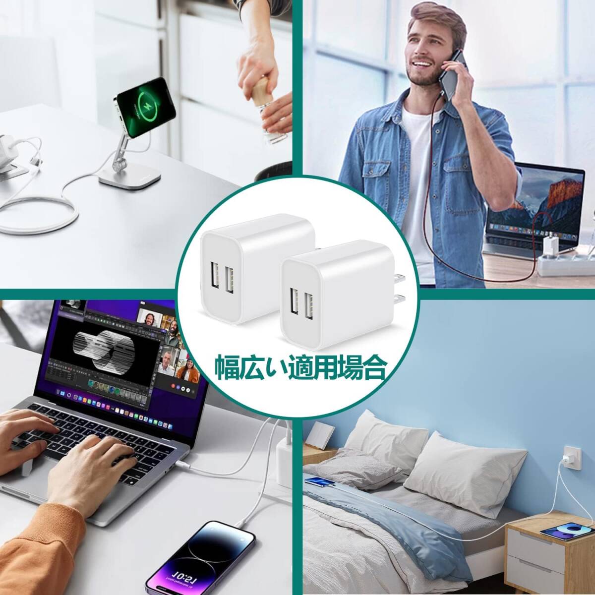 USB 充電器 ACアダプター iPhone 急速充電器 2個 セット ACコンセント スマホ 急速充電 iPhone iPad Android Galaxy