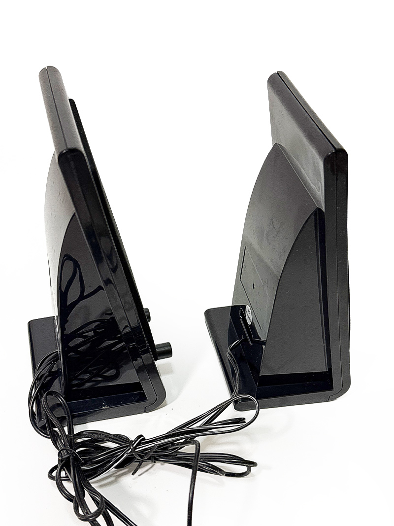 スピーカー本体にアンプを内蔵、ステレオミニプラグをパソコンに接続するだけで簡単にお使いいただけます。