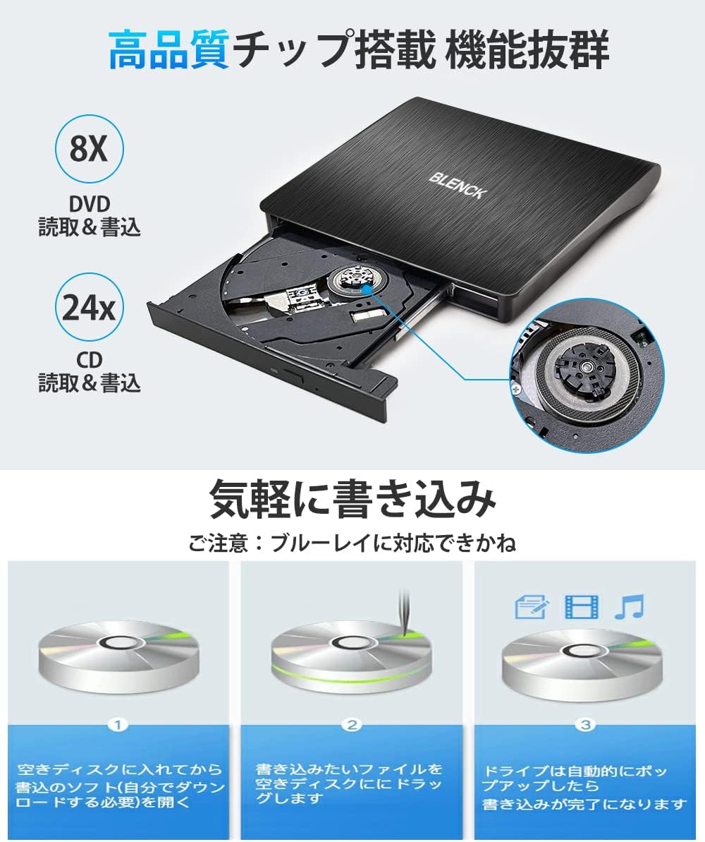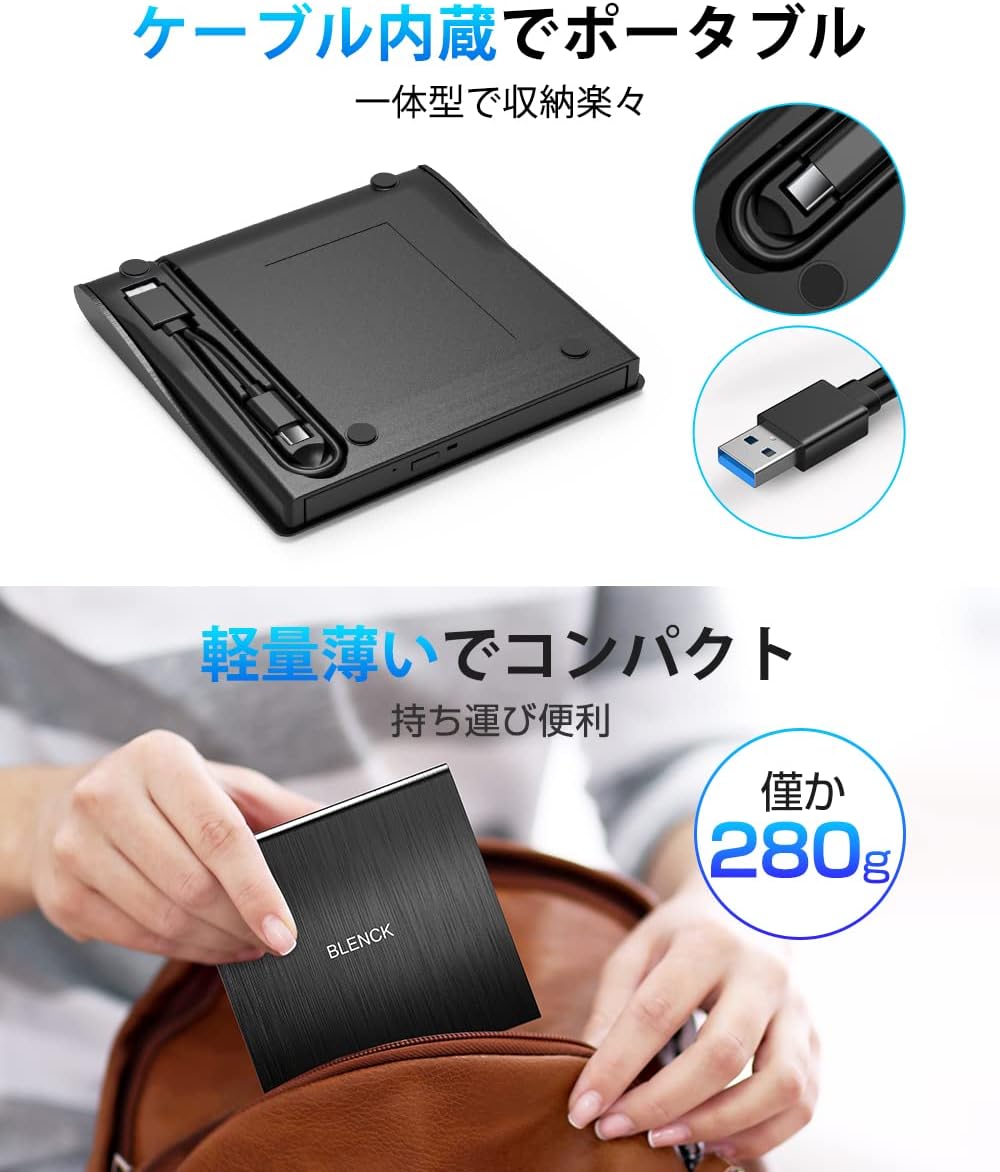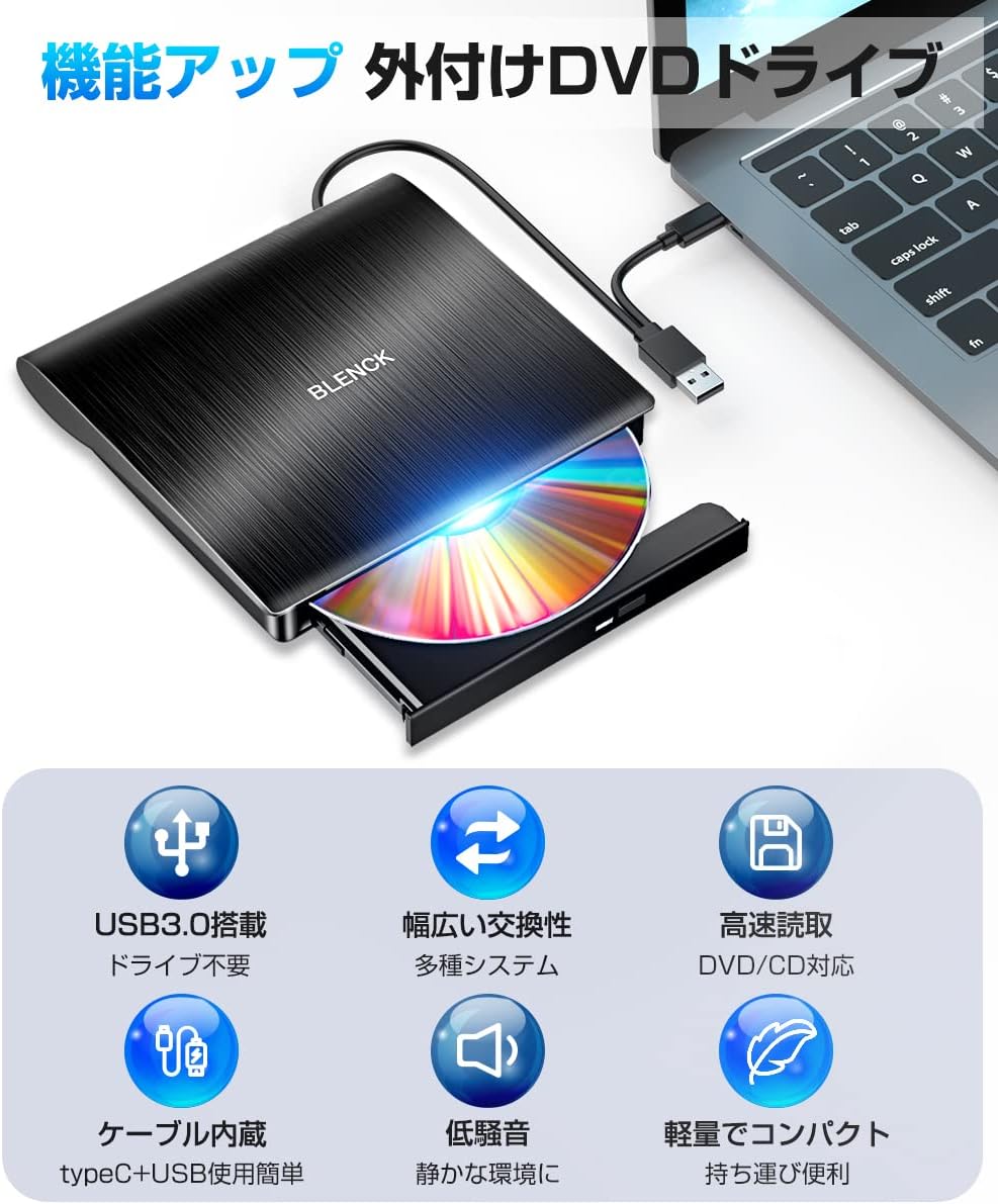 DVDドライブ 外付け ポータブルドライブ CD/DVDプレイヤー typeC USB 静音 高速 軽量 読取 書込 動作品