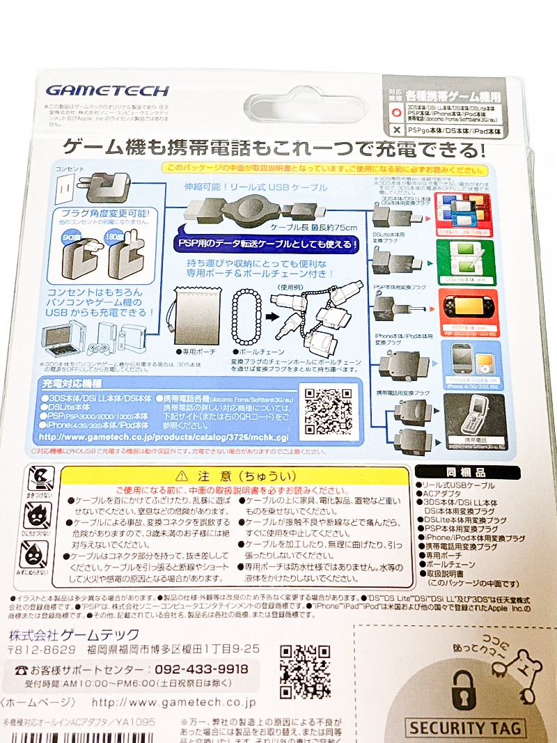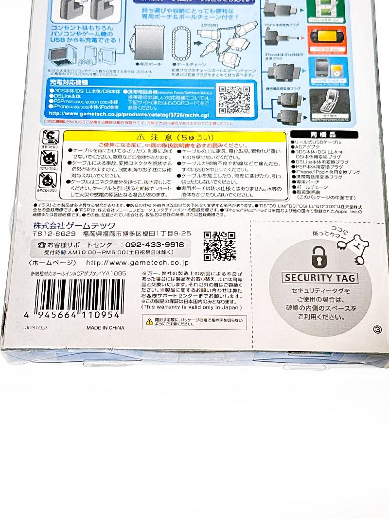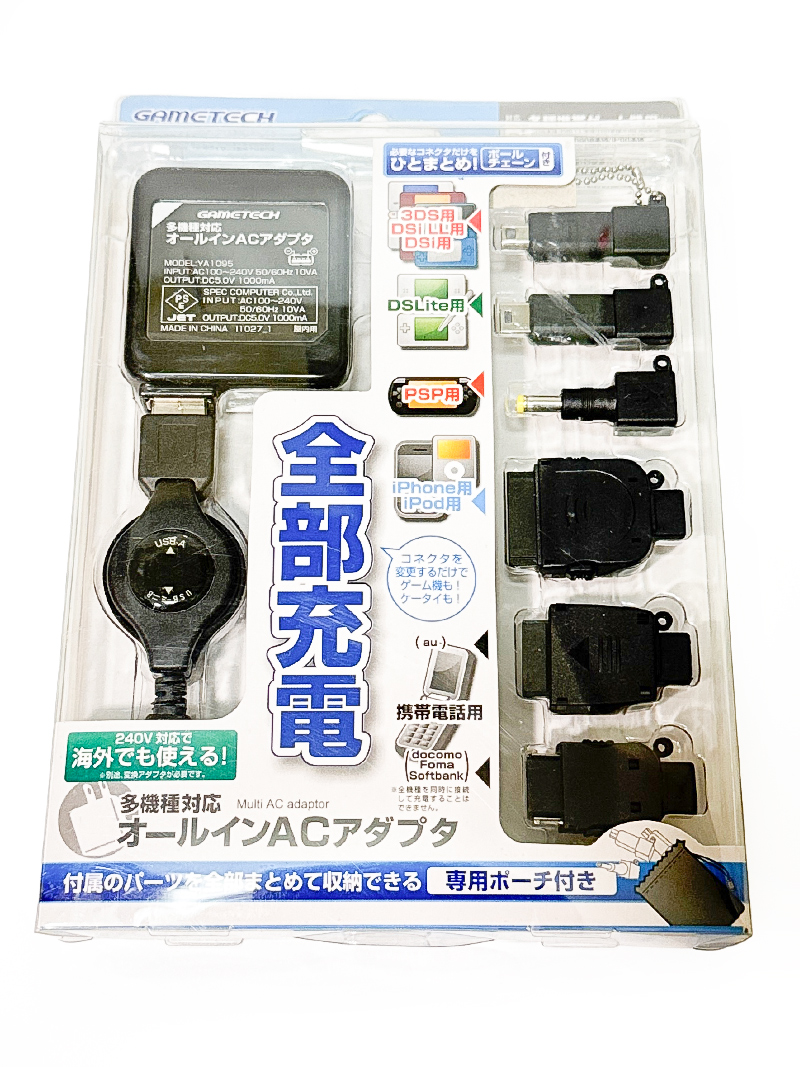 ゲームテック GAMETECH 多機種対応オールインACアダプター 収納式プラグ 海外使用可 DS/PSPなど対応 YA1095