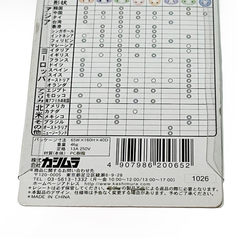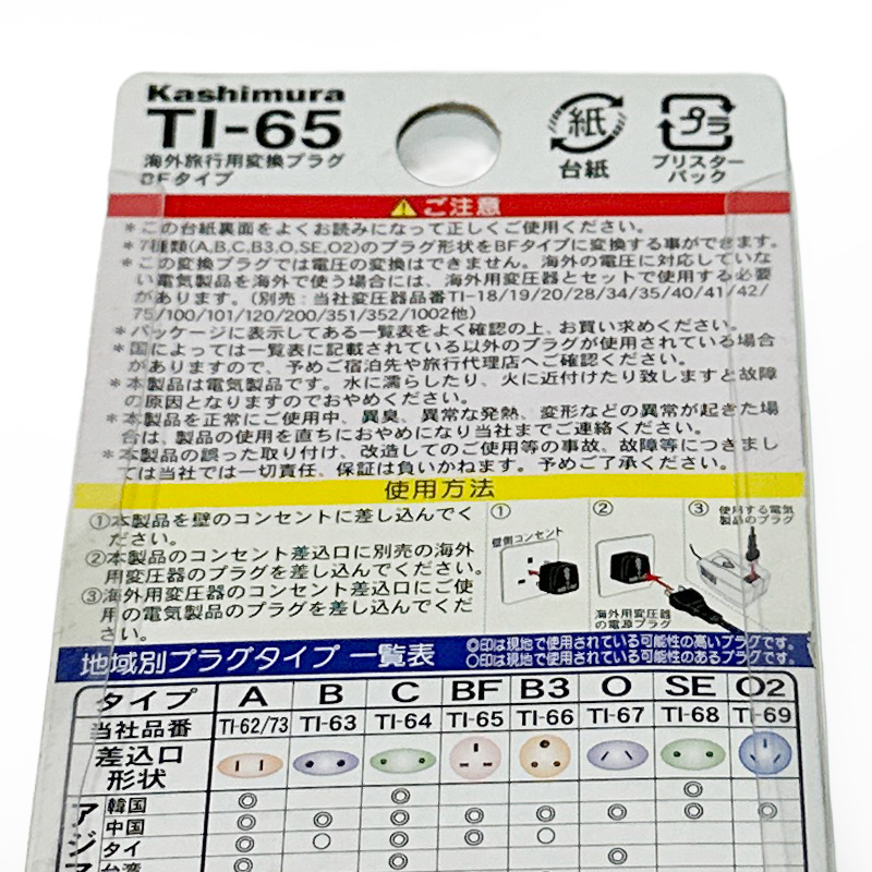 カシムラ 海外旅行用 変換プラグ BFタイプ TI-65 3.6x5.0x3.6cm 中国/タイ/シンガポールなど