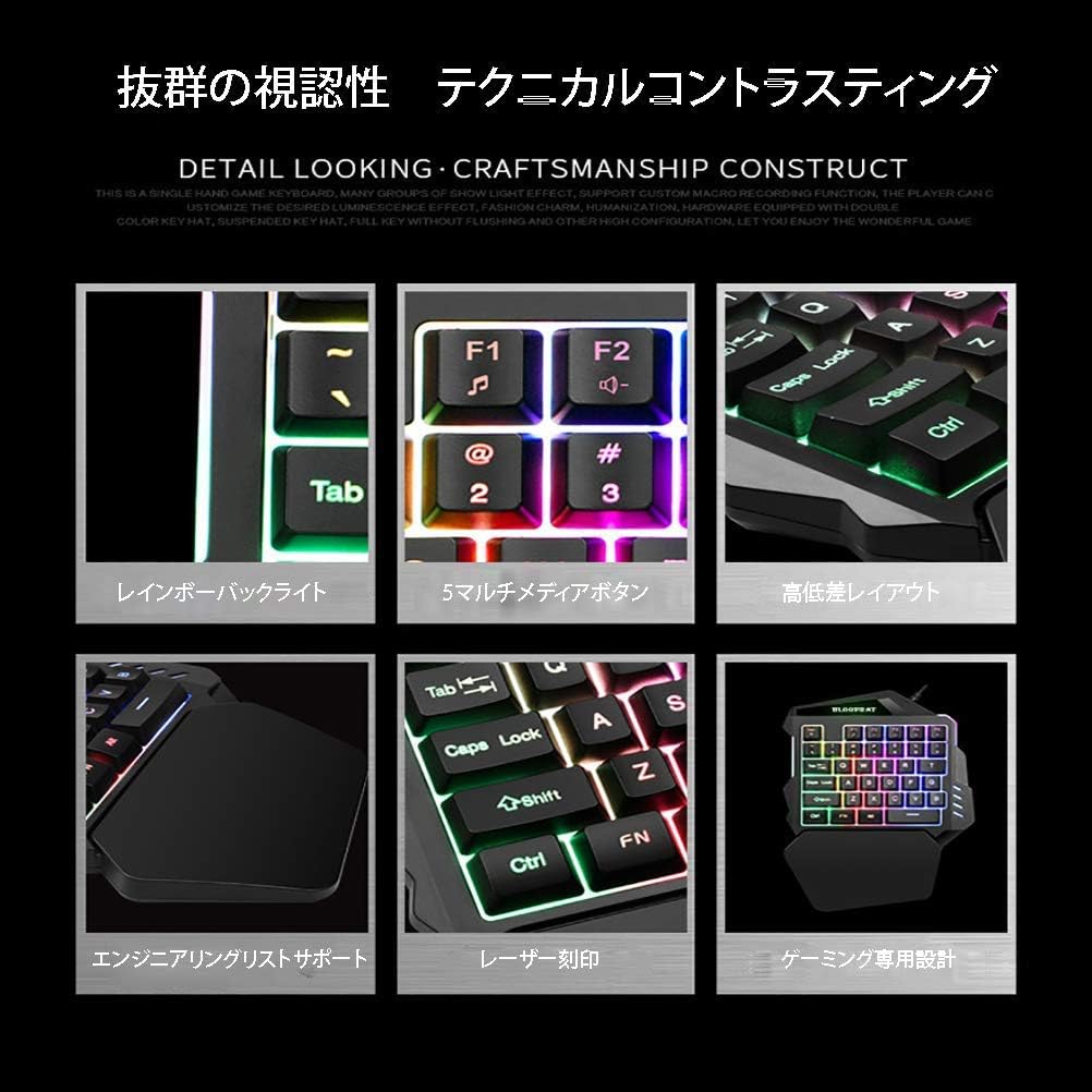 片手キーボード ゲーミングキーボード 片手 メカニカルタッチ LEDバックライト usb 有線 35キー 左手用 動作品