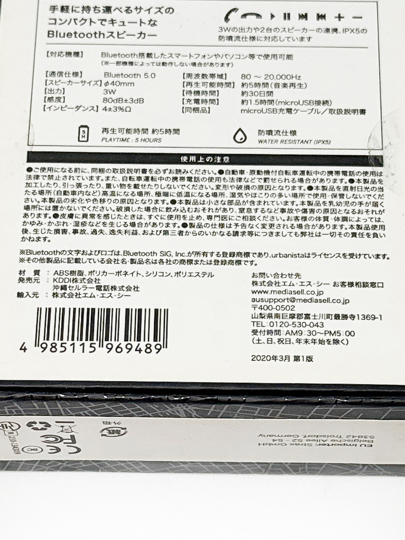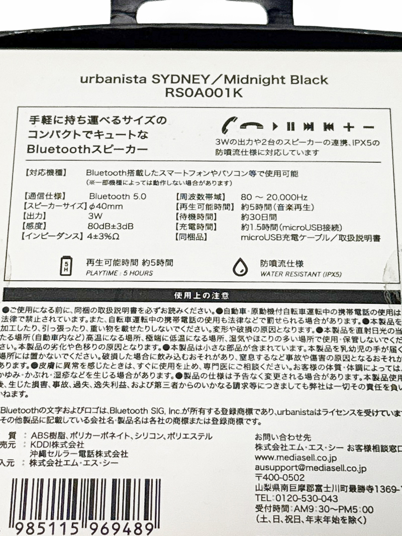 urbanista SYDNEY Bluetooth5.0 ワイヤレススピーカー iOS・Android対応 再生・停止ボタン搭載