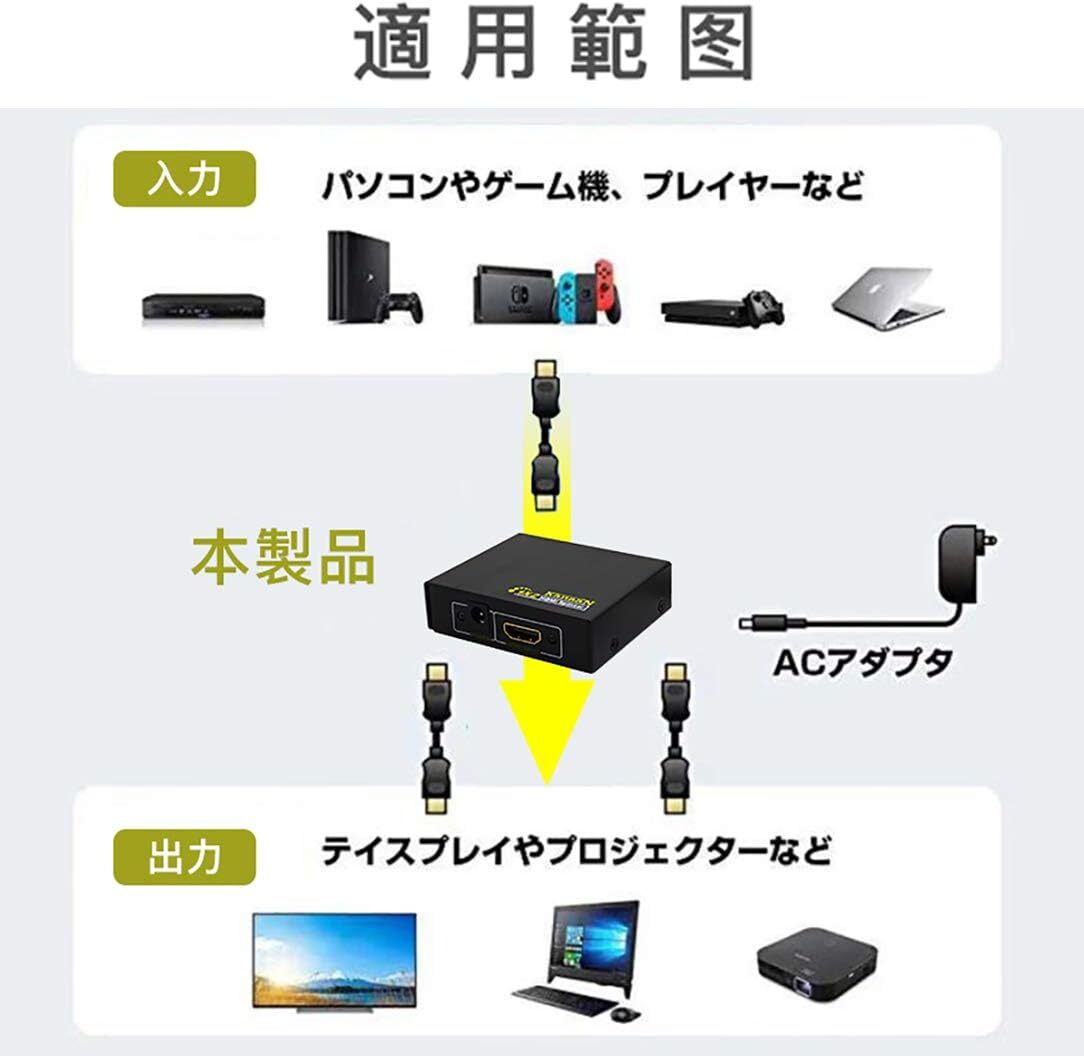 HDMIスプリッター 1入力2出力 1080p hdmi切替器 1入力 Full UHD/HD 1.4b 2-fach 2-port PS4 Pro DVDプレーヤー HDTV