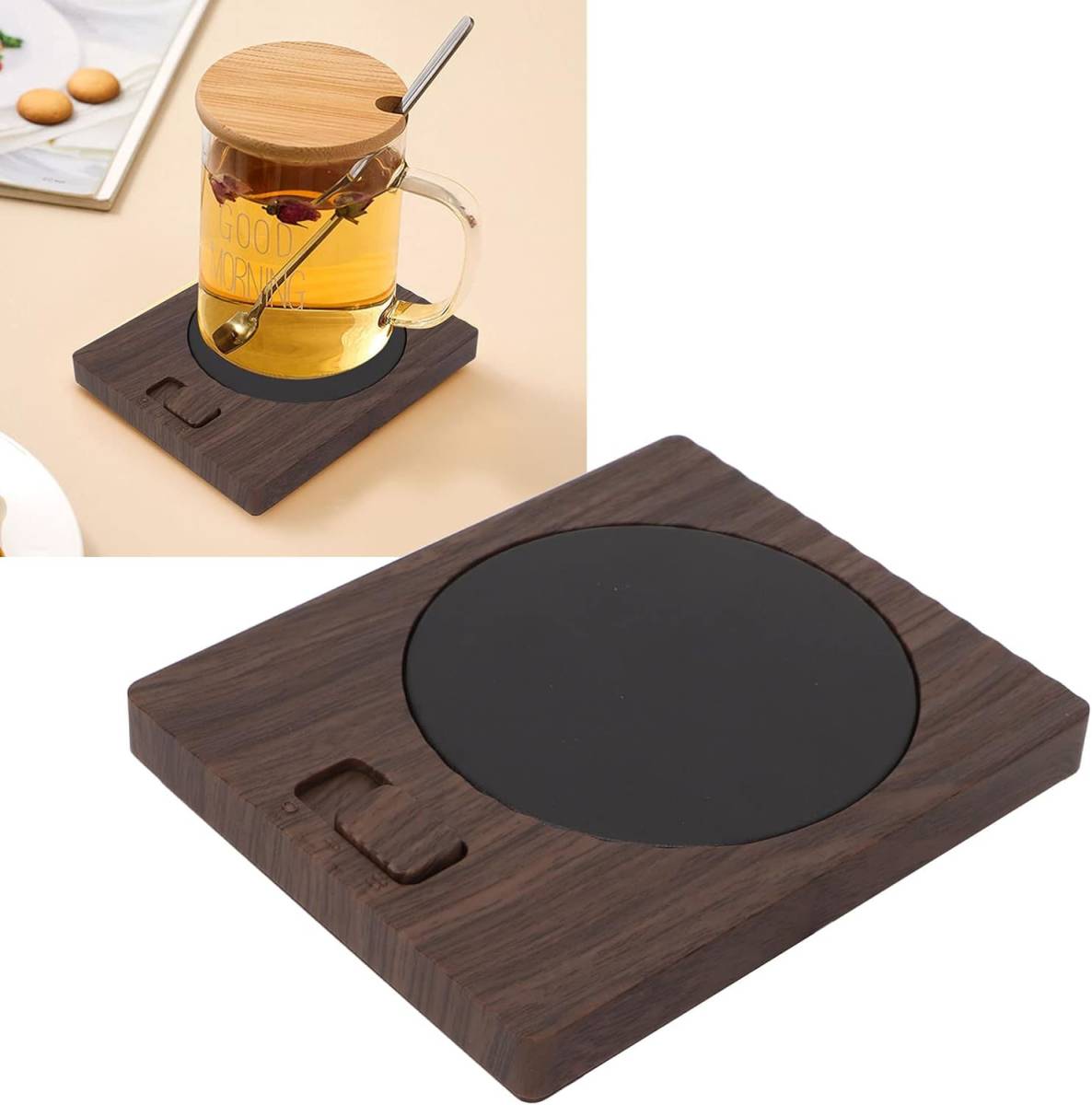 電動カップウォーマー 電動マグウォーマー USB 2段階温度調節可 木目調 マグカップ グラス ステンレス製カップ 哺乳瓶