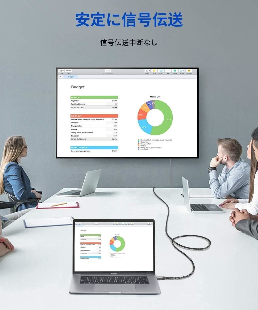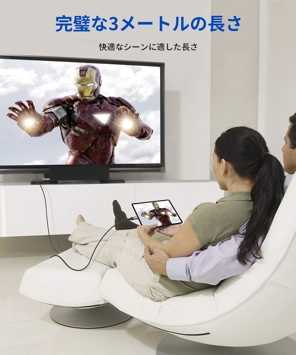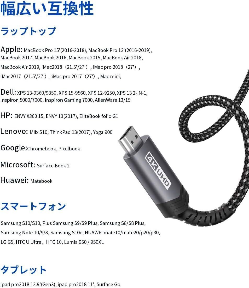JSAUX USB-C to HDMI ケーブル 3m 4K 60Hz対応 変換 MacBook iPad Surface Samsung