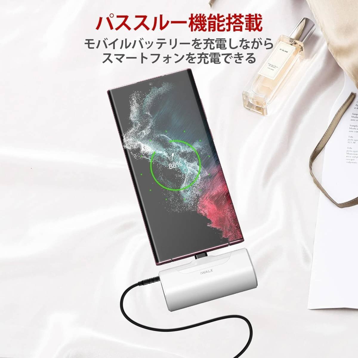 iWALK 超小型 モバイルバッテリー 4500mAh USB-C コネクター内蔵 直接充電 コードレス コンパクト Samsung PSE認証済