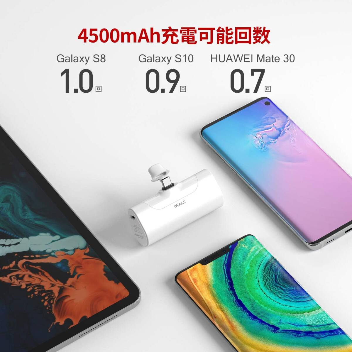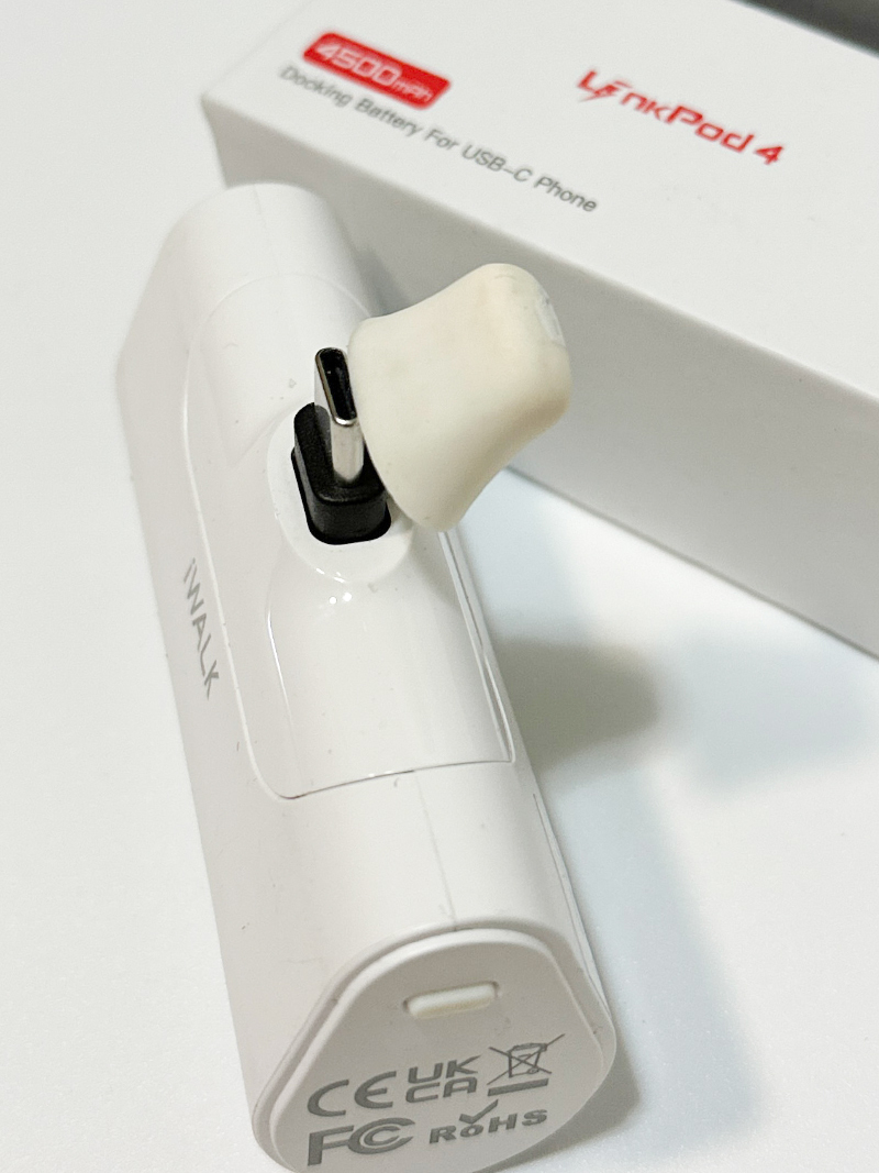超小型 モバイルバッテリー 4500mAh USB-C コネクター内蔵 直接充電 コードレス コンパクト Samsung Android Type-C