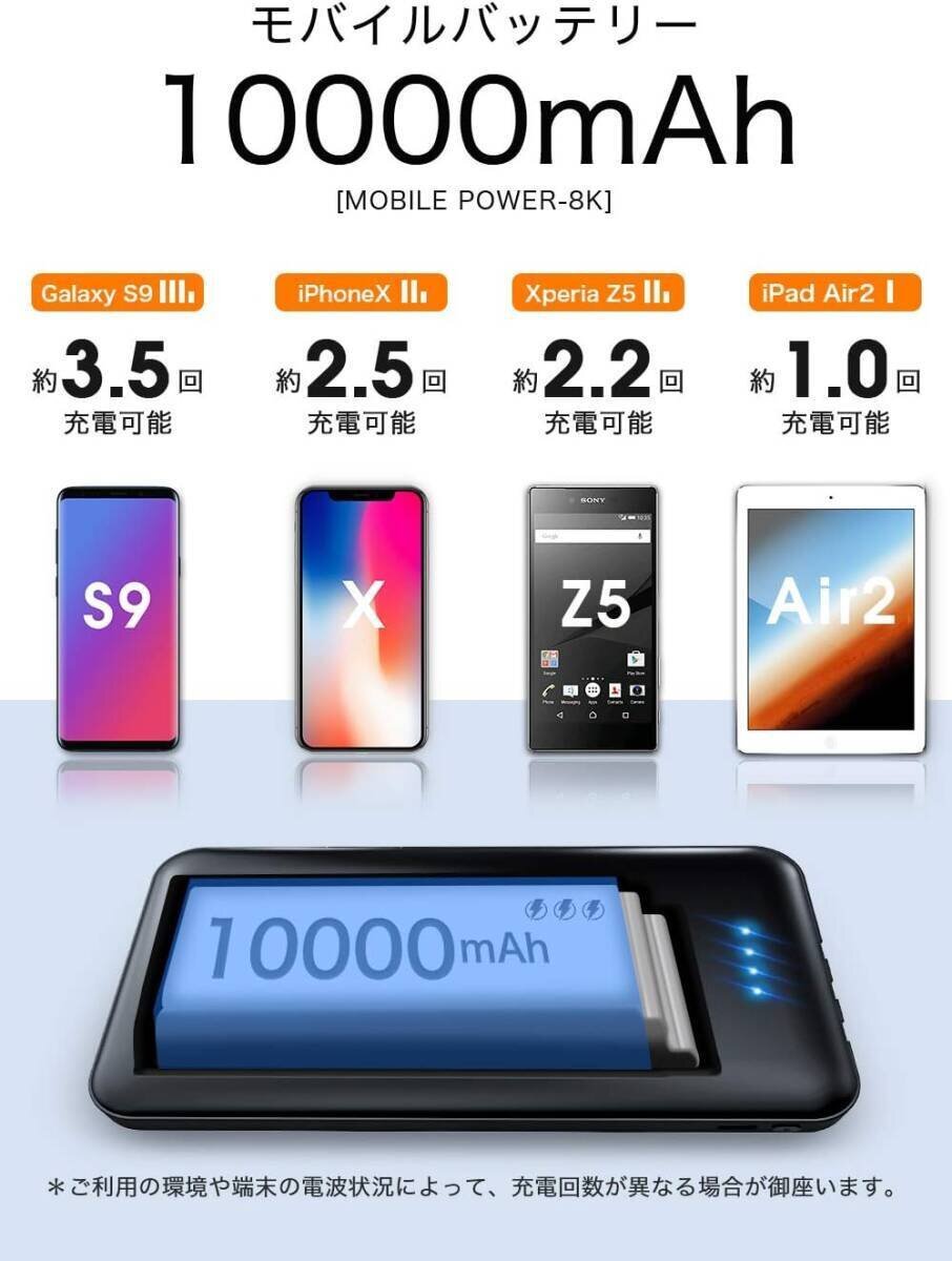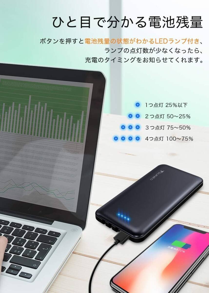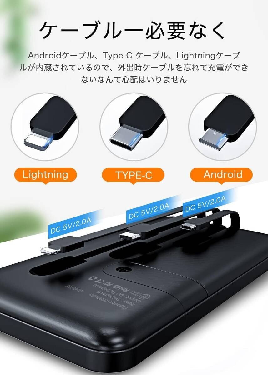 モバイルバッテリー 10000mAh Lightning Micro USB Type-C スマホ充電器 同時充電 スタンド機能 iPhone iPad Android