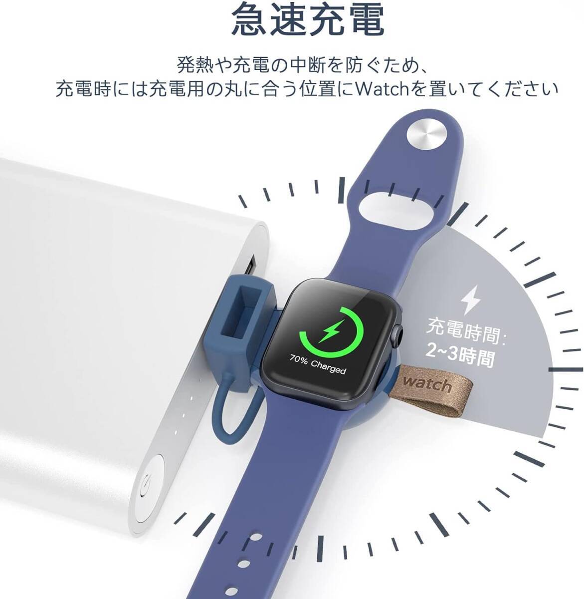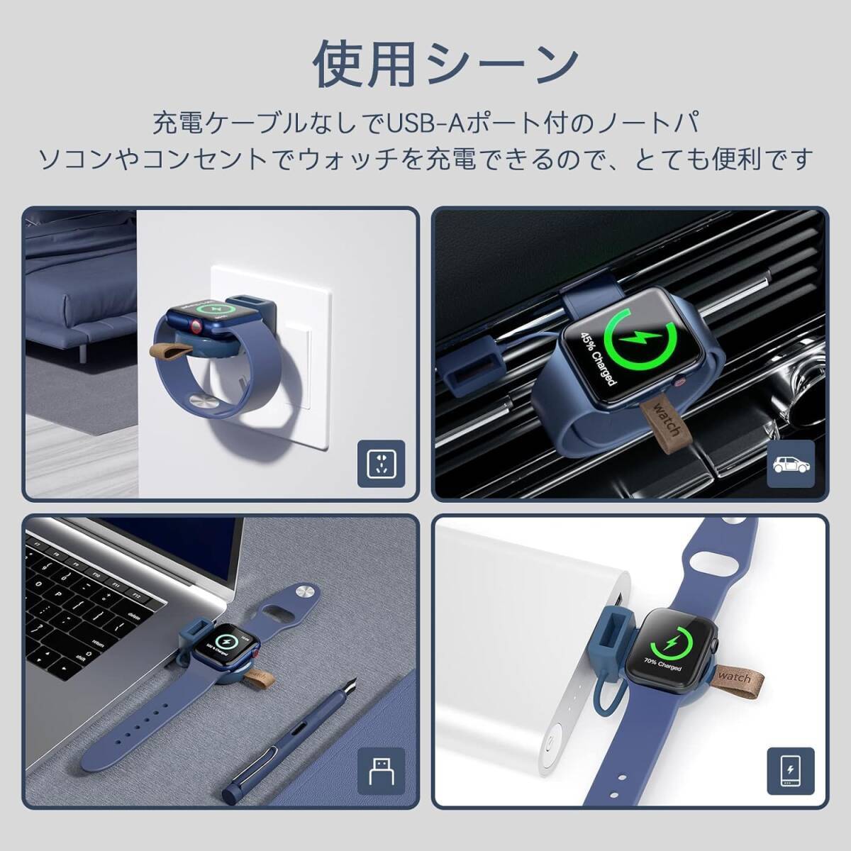 Apple Watch 充電器 USB-Aポート マグネット式 ワイヤレス充電器 急速充電 小型 軽量 コンパクト 持ち運び便利