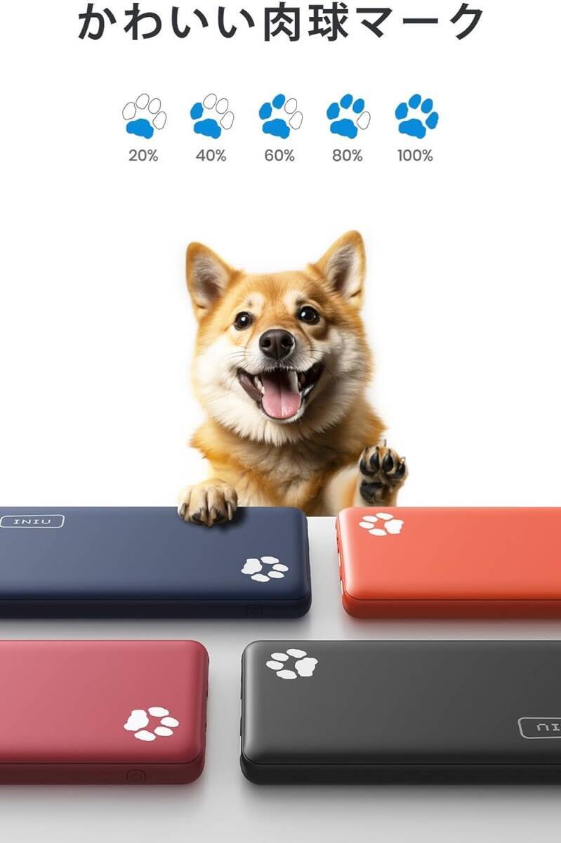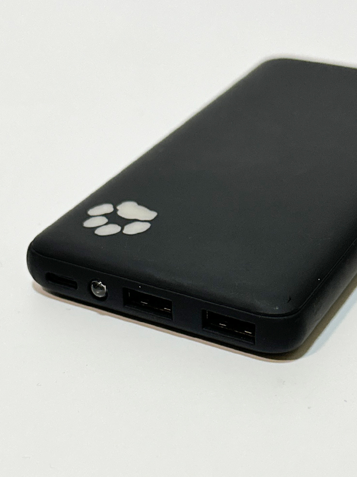 かわいい残量表示の肉球がデザインされたモバイルバッテリー。