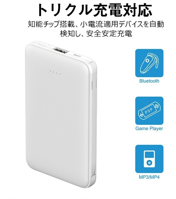 Micro USB入力/出力、USB-A/C出力ポートを備えた同時充電が可能なモバイルバッテリー。