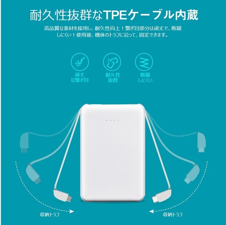 ケーブル内蔵 12000mAh モバイルバッテリー c1009 残量表示 2.1A急速充電 大容量 iPhone android タイプC USB lightning