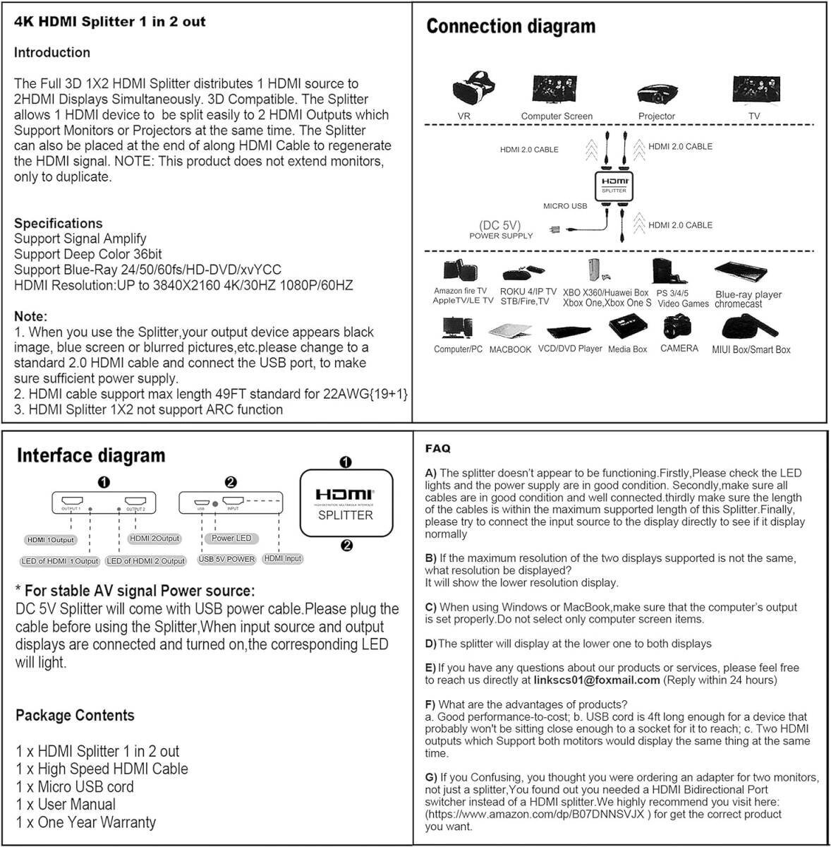 HDMI分配器 4K 1入力2出力 3D フルHD 1080P HDCP1.4対応 二股 同時出力 ケーブル付属 XBOX PS5 HDTV DVDプレーヤー