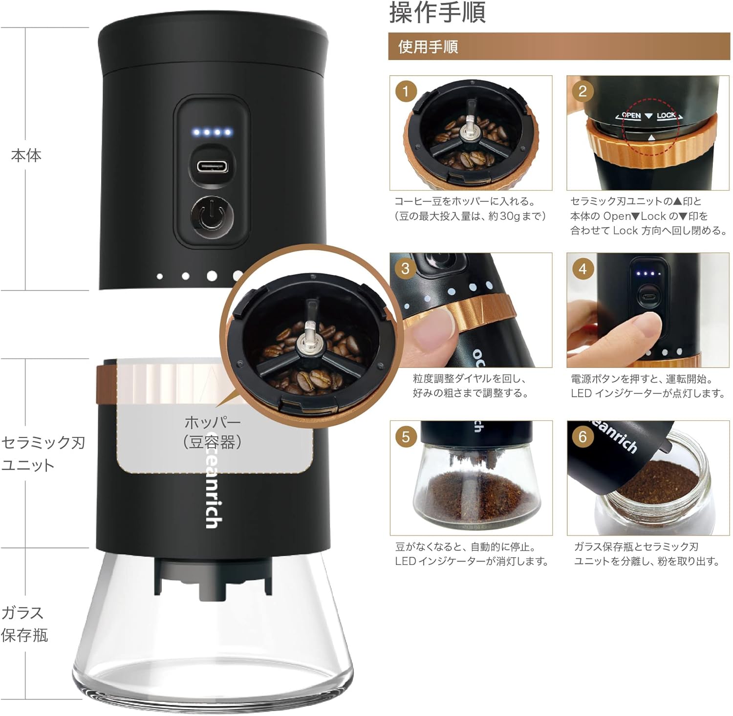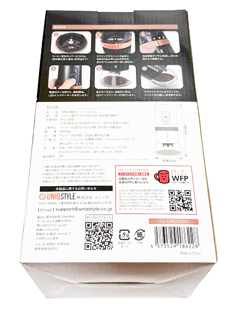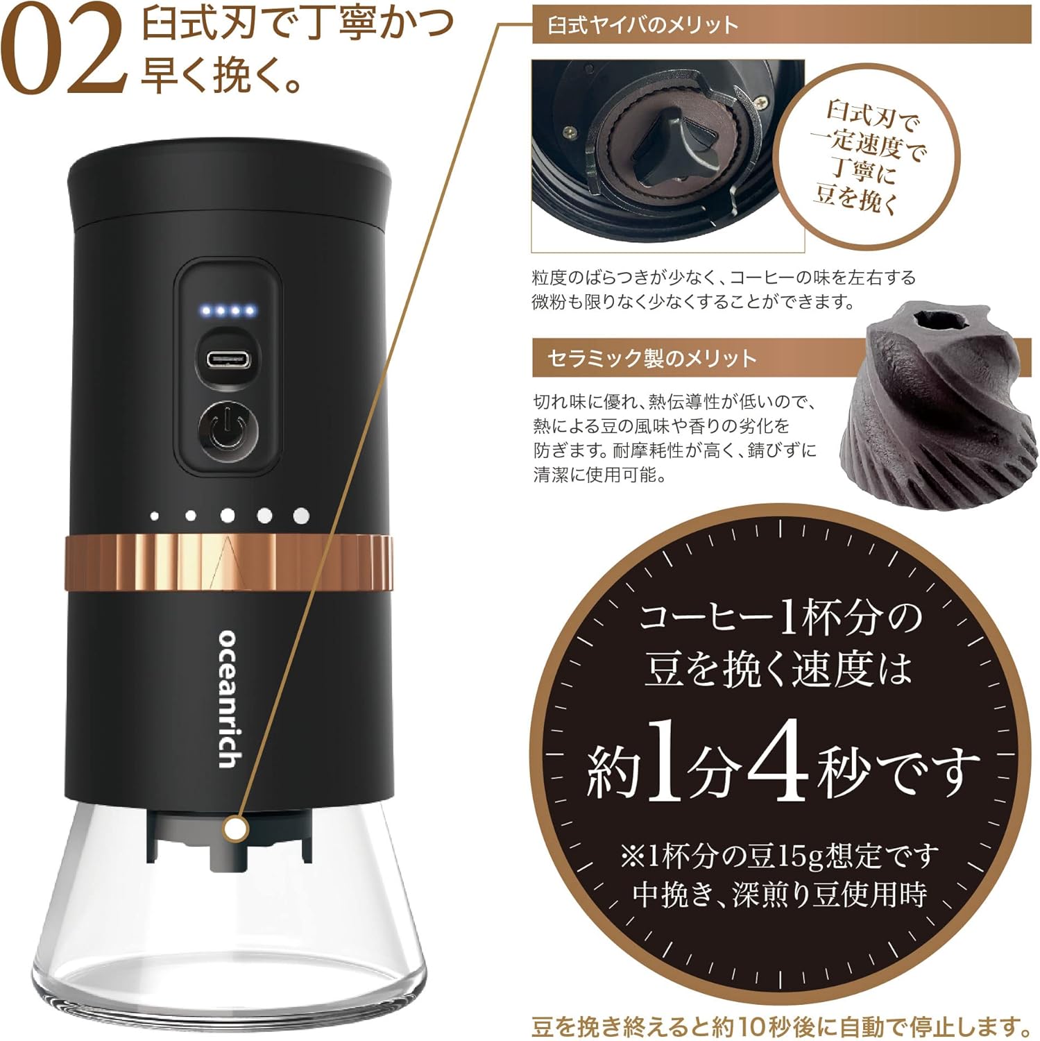 oceanrich 自動コーヒーミル G2 TypeC充電式 臼式 コードレス UQ-ORG2CBK 臼式 珈琲ミル 新品