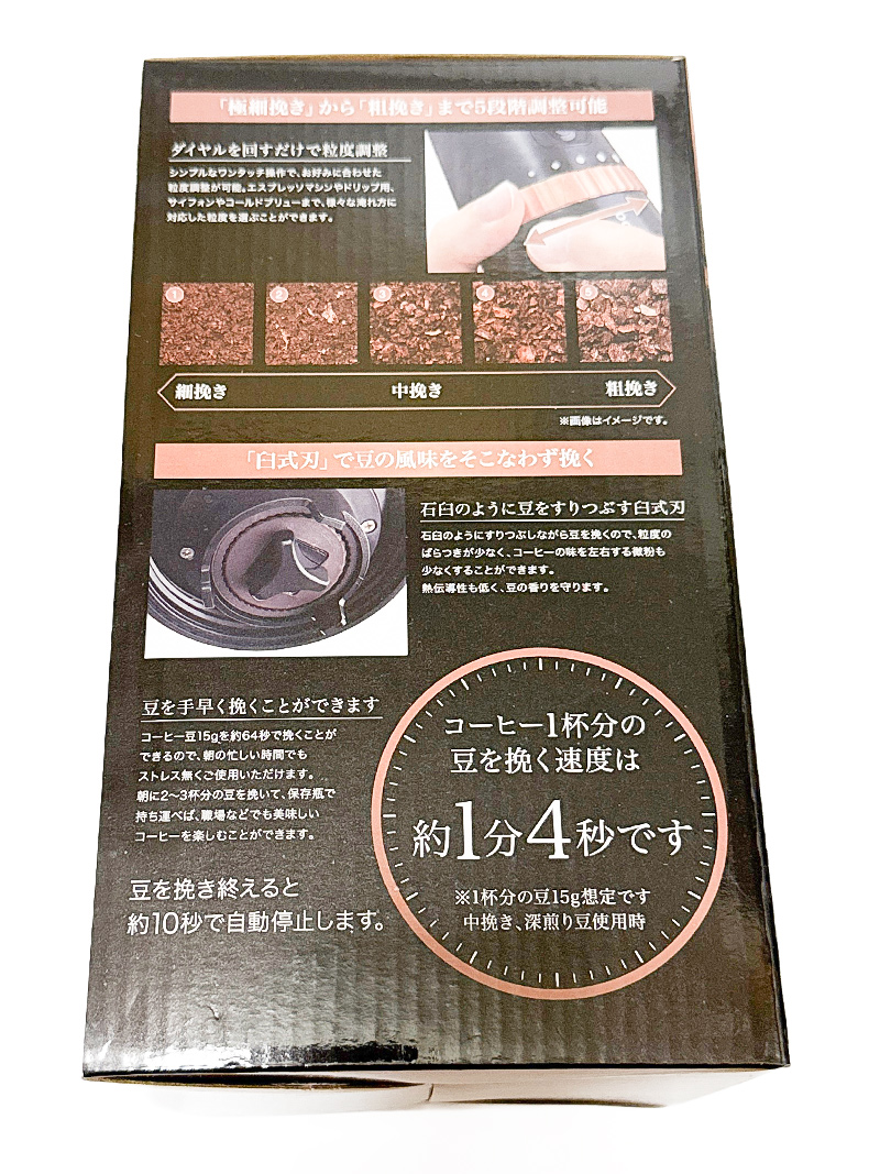 約1分4秒(64秒)でコーヒー粉を自動で作れる優れもの!!