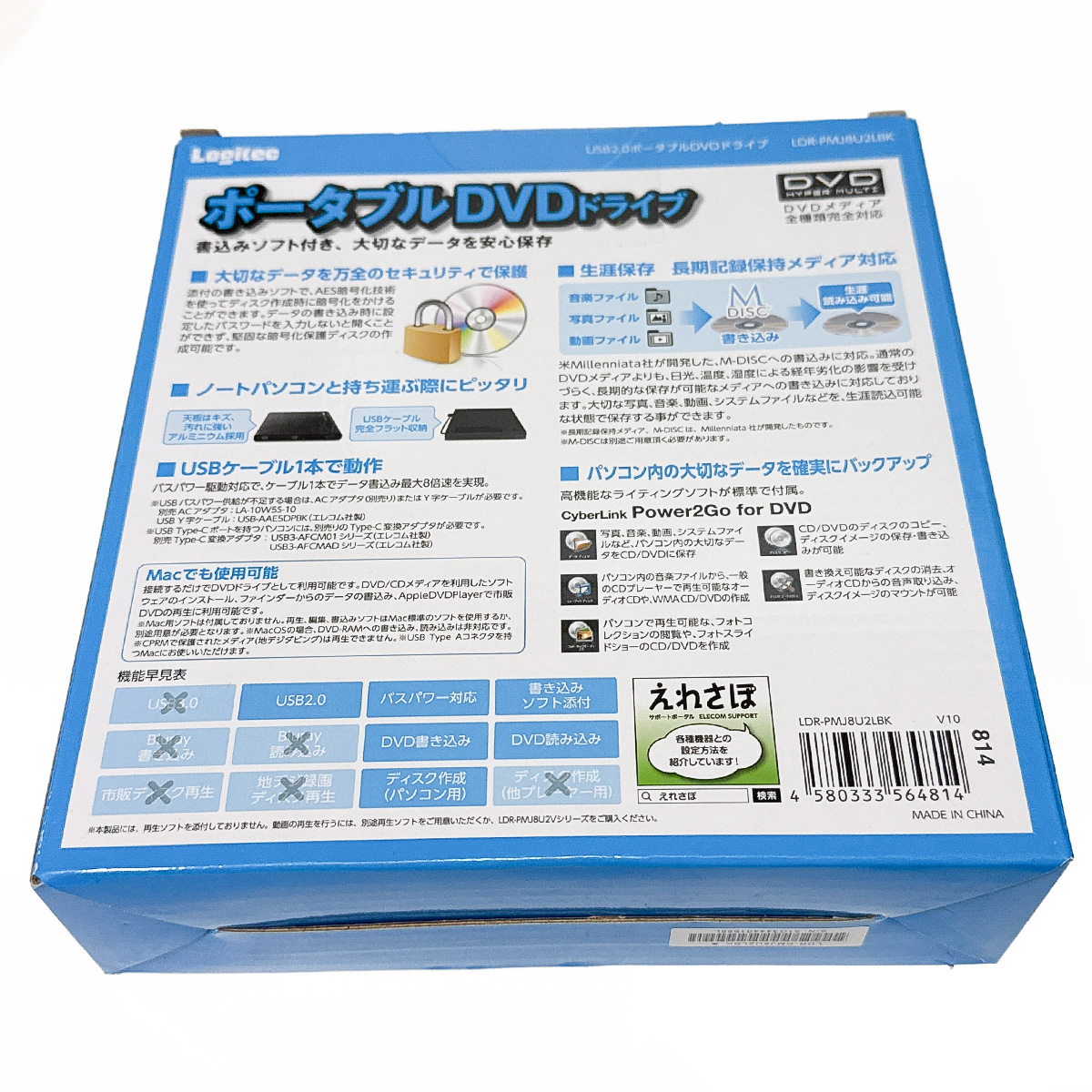 ロジテック DVDドライブ バスパワー DVDメディア全種類対応 書込みソフト付き LDR-PMJ8U2LBK Surface対応