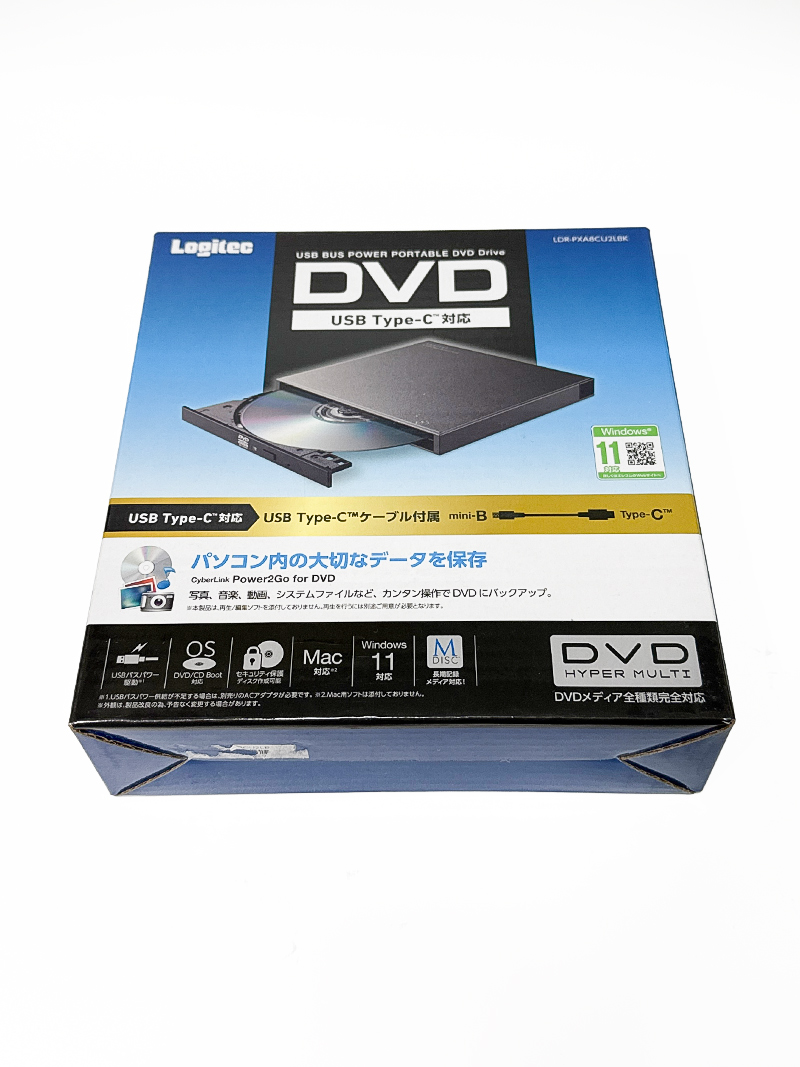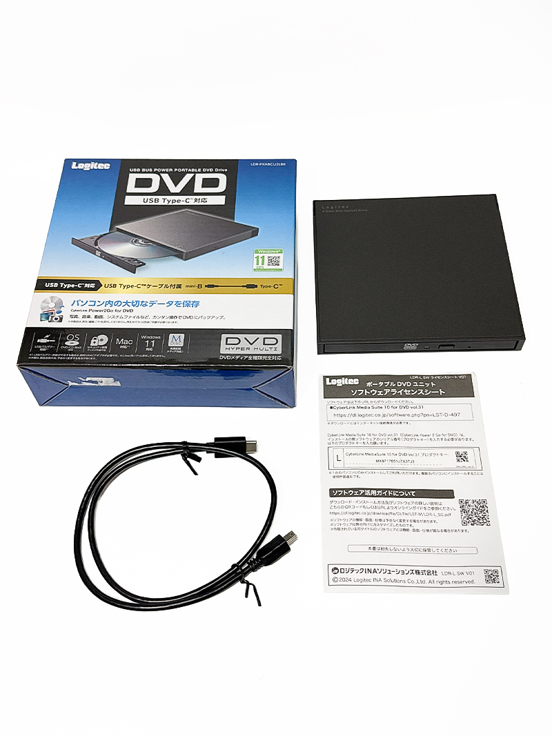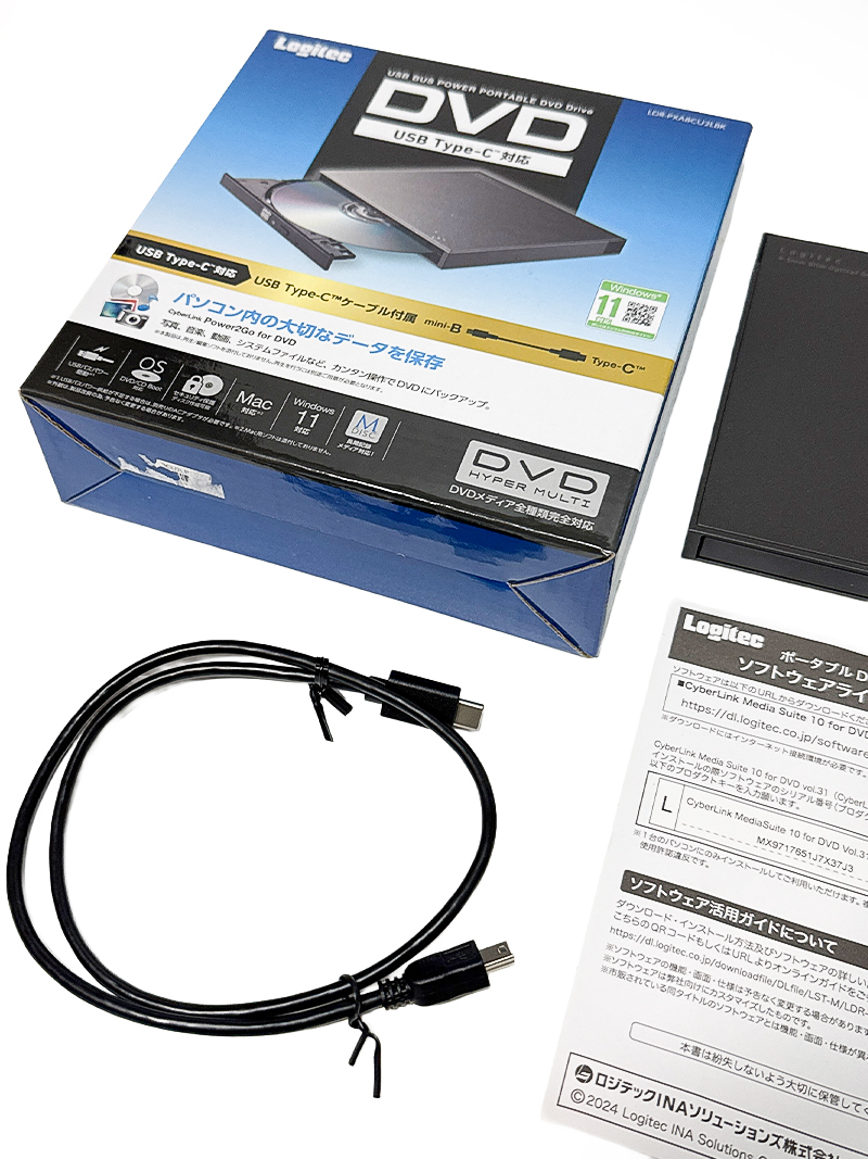 エレコム USB Type-C対応 ポータブルDVD LDR-PXA8CU2LBK 国内最軽量・最小クラス DVDメディア全対応