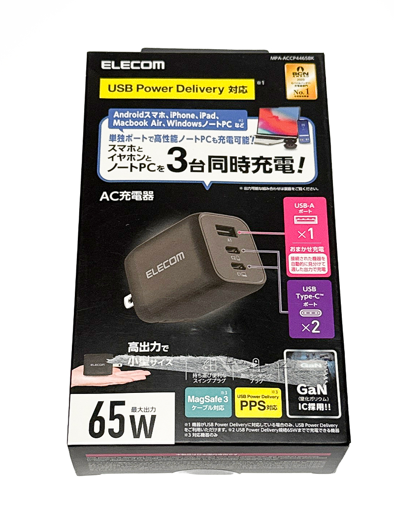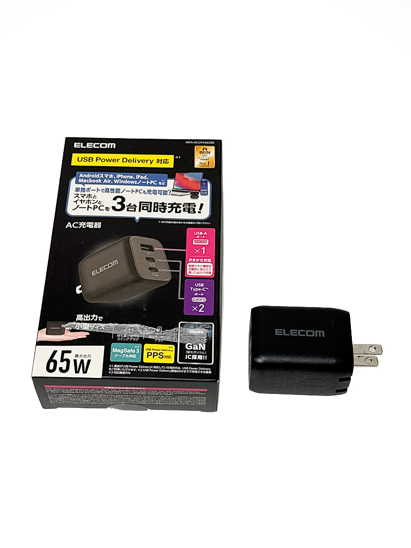 エレコム USB Power Delivery 65W キューブAC充電器 タイプC×2 タイプA×1 MPA-ACCP4465